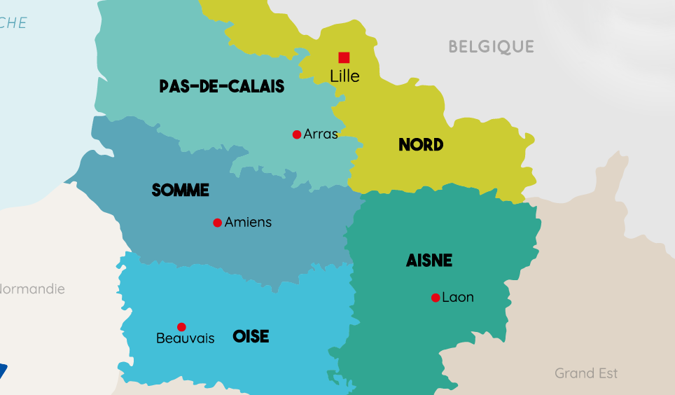 Elle couvre 5 départements , l’Aisne, Le Nord, l’Oise, le Pas de Calais, et la Somme.